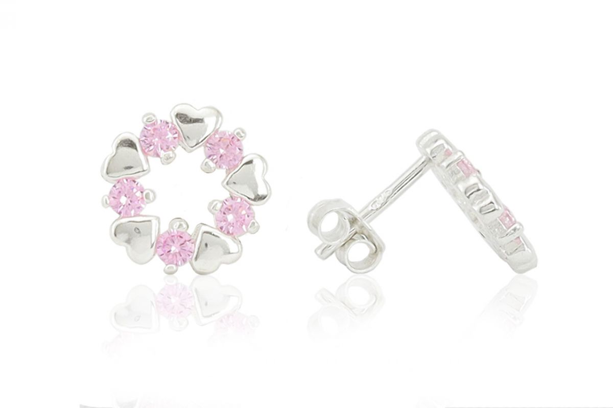 Ragyogóan szépen szikráznak a rájuk eső fényben ezek az apró rózaszín cirkónia kövecskék! Akár ajándékba, akár saját kiegészítőnek, ez a kis koszorús ezüst fülbevaló tökéletes választás lehet!