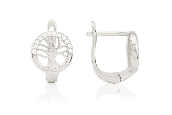 Ezüst fülbevaló franciakapcsos áttört életfa köves ródiumbevonatos