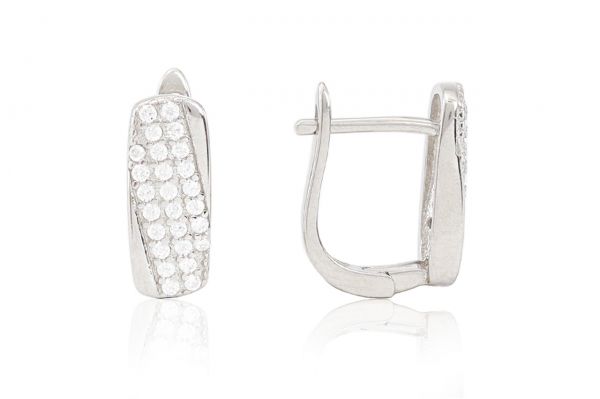 Ezüst fülbevaló franciakapcsos elegáns széles köves díszítéssel ródiumbevonatos