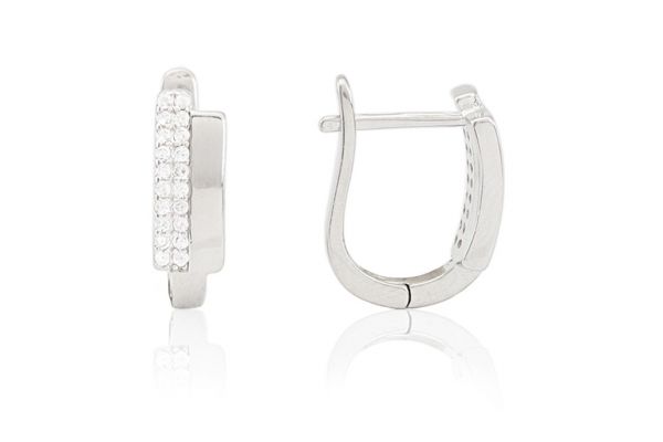 Ezüst fülbevaló franciakapcsos elegáns széles félig köves ródiumbevonatos