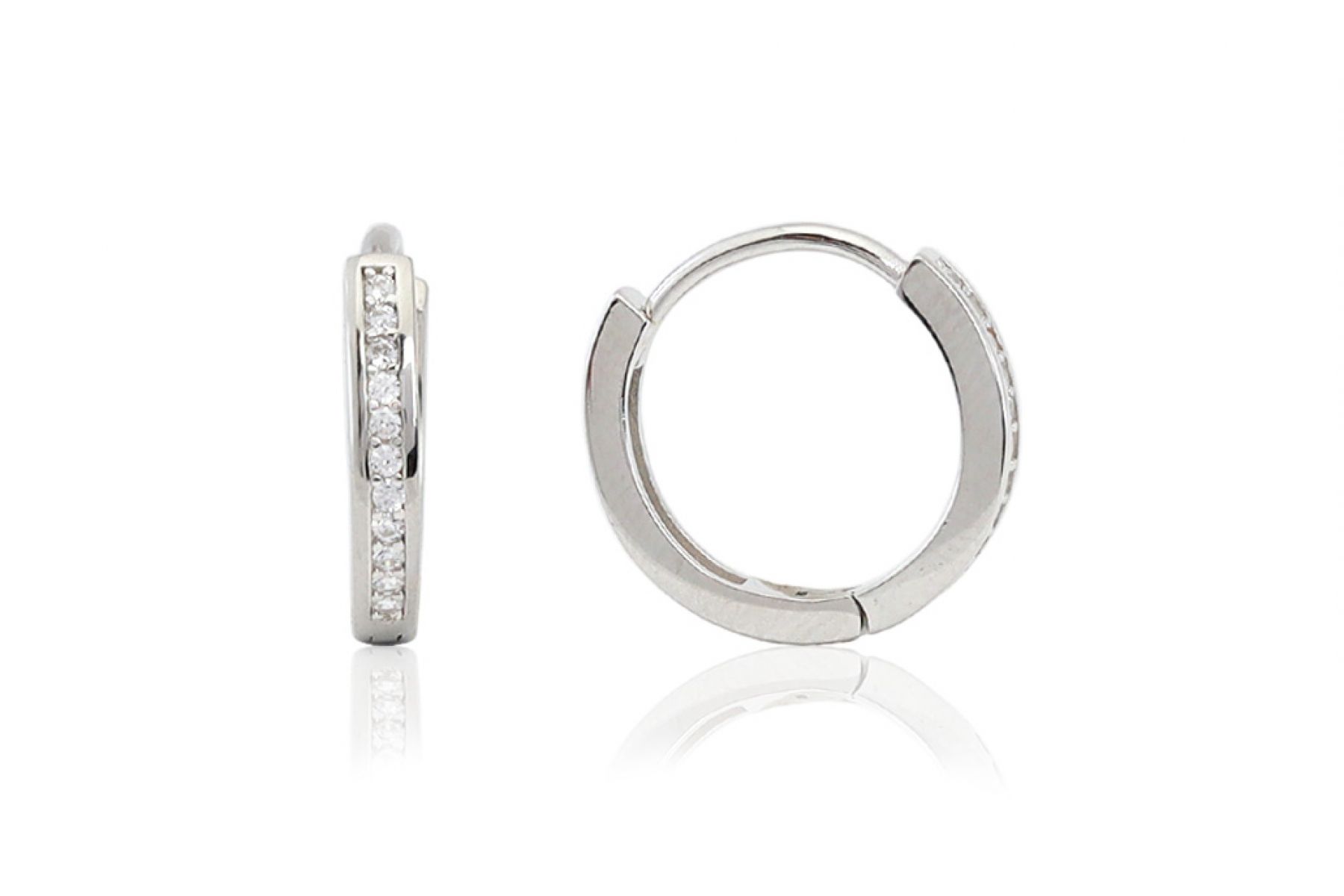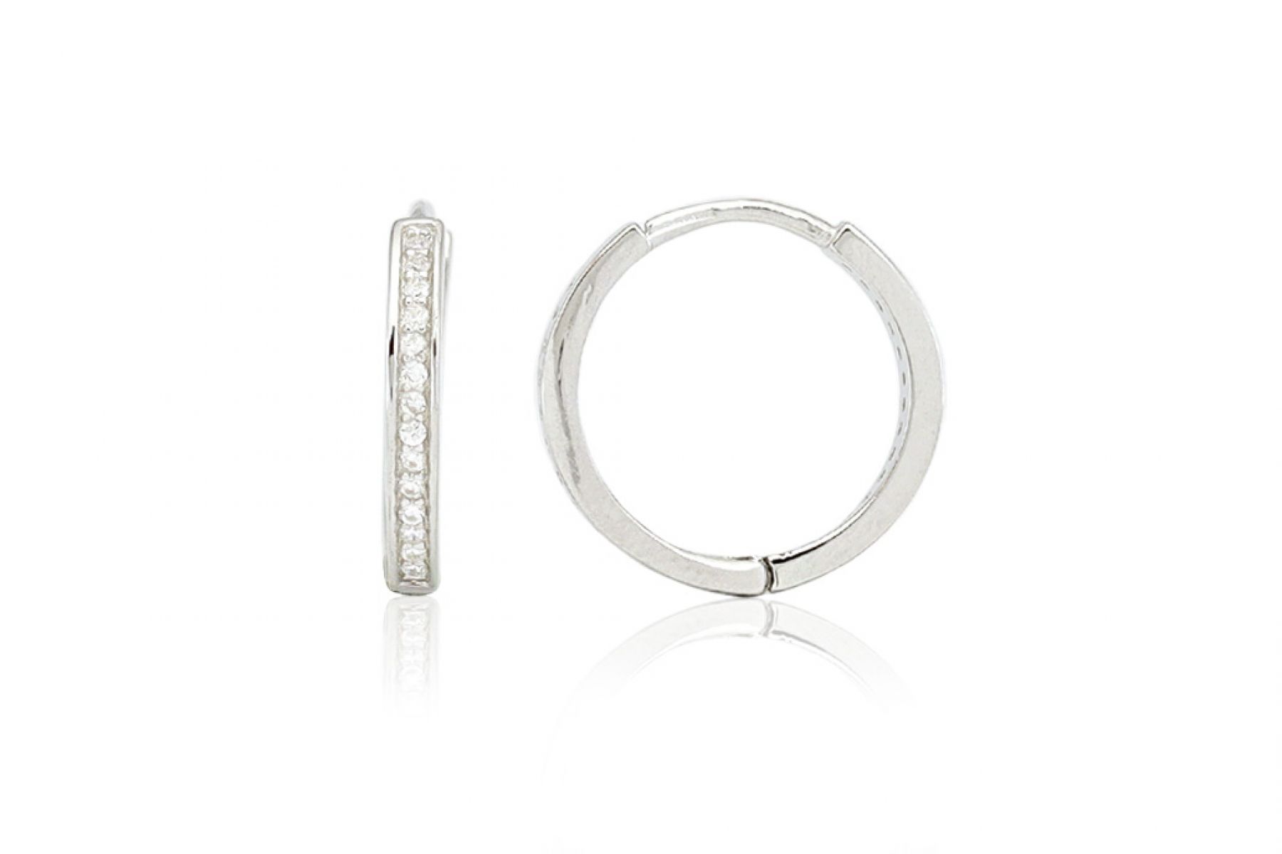 Ezüst fülbevaló keskeny bepattintós karika fehér köves 13mm ródiumbevonatos Anyaga: 925 ezüst Bevonat: ródiumbevonatos Külső méret: 16 x 16 mm Belső hasznos terület: 13 x 13 mm Szélesség: 2mm Súly: 1.6 g