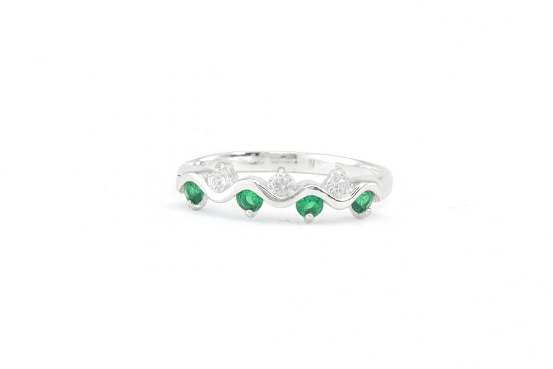 Egyszerre elegáns és szikrázóan szép mivolta miatt bátran ajánljuk ezt a hullámmintás, fehér és zöld cirkónia kövel díszített ezüst gyűrűt minden olyan nőnek, hölgynek és leányzónak, aki szeret odafigyelni az apró részletekre és jól érzi magát a bőrében.